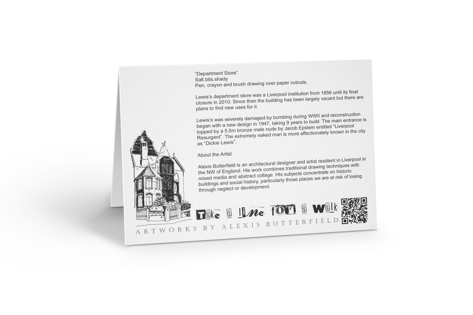 A single 7x5" greetings card printed on Mohawk 324gsm card. Blank inside for your own message. Rear of card includes brief description and history of building.