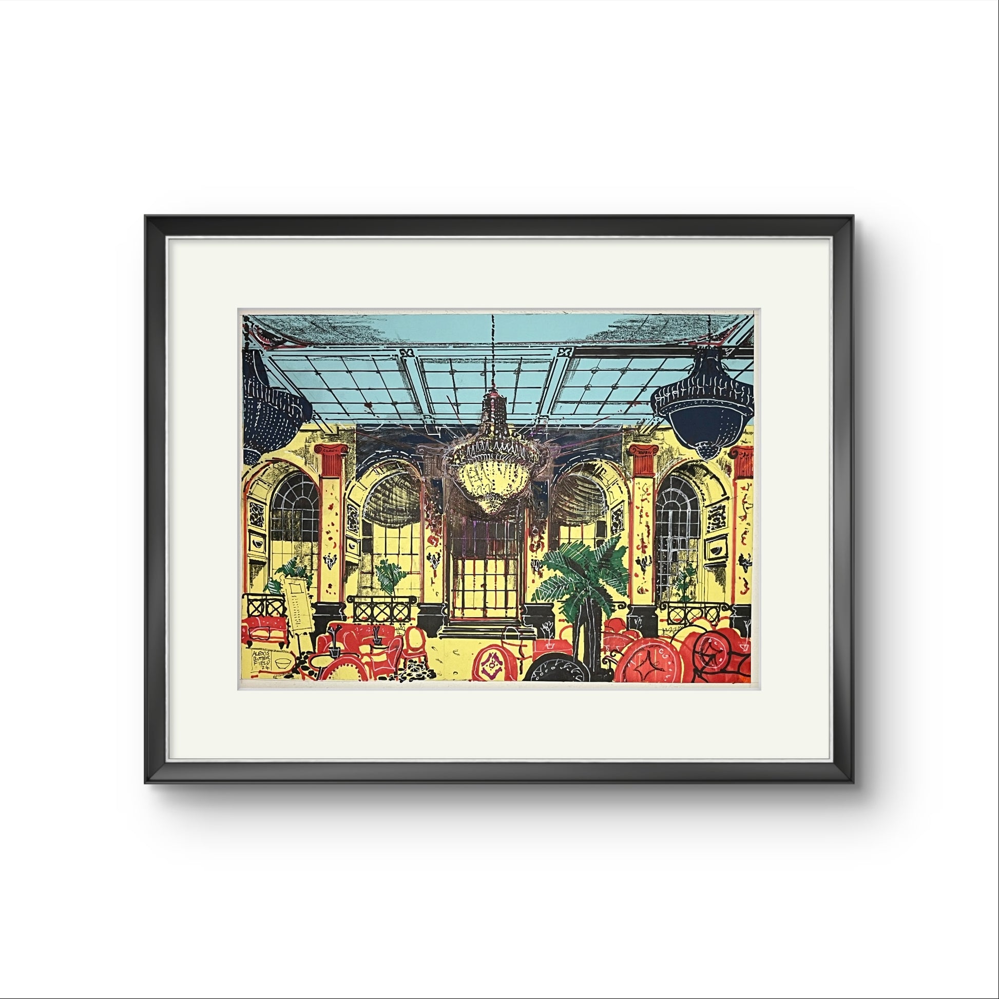 Pen and crayon drawing over collage on 300gm hot pressed paper
