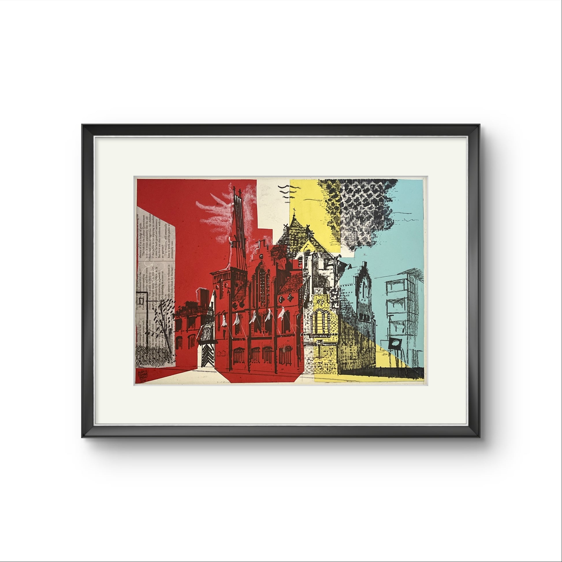 Pen and crayon drawing over collage on 300gm hot pressed paper