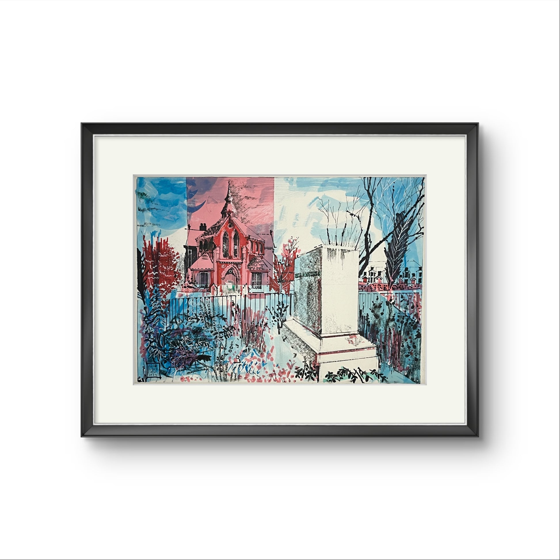Pen, crayon and brushed ink drawing over collage on 300gm hot pressed paper